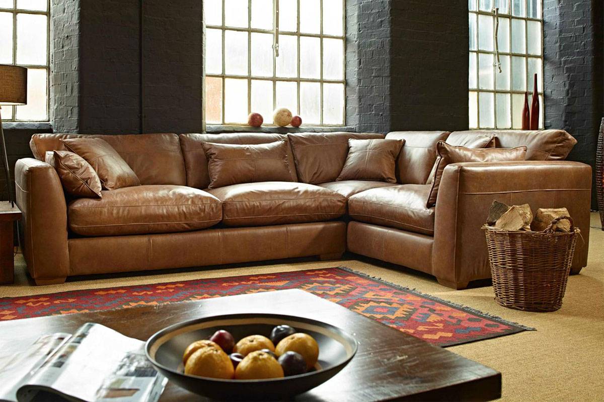 Для угловой малогабаритной гостиной можно использовать привычную схему мебельной расстановки. Место возле длинной стены можно обставить диваном с креслами и столиком. В угол между двумя окнами отлично впишется аккуратный угловой диванчик, комод или тумба с телевизором.