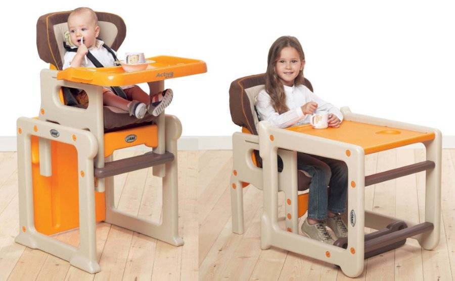 Такая модель может использоваться как стульчик для кормления малыша или в качестве полноценного стола для ребенка постарше