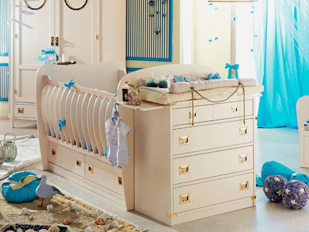 Существует масса моделей такой мебели, отличающихся друг от друга функциональностью и дизайном. В зависимости от комплектации, детские кроватки состоят из различных модулей — столикам, комодами, съемными люльками. В некоторых конструкциях столик для пеленания служит опорной конструкцией кроватки, в других предусмотрена возможность трансформировать комод в тумбочки.