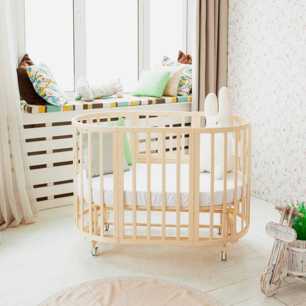 Существуют и круглые детские кроватки-трансформеры, предоставляющие ребенку возможность полного обзора, как в манеже.