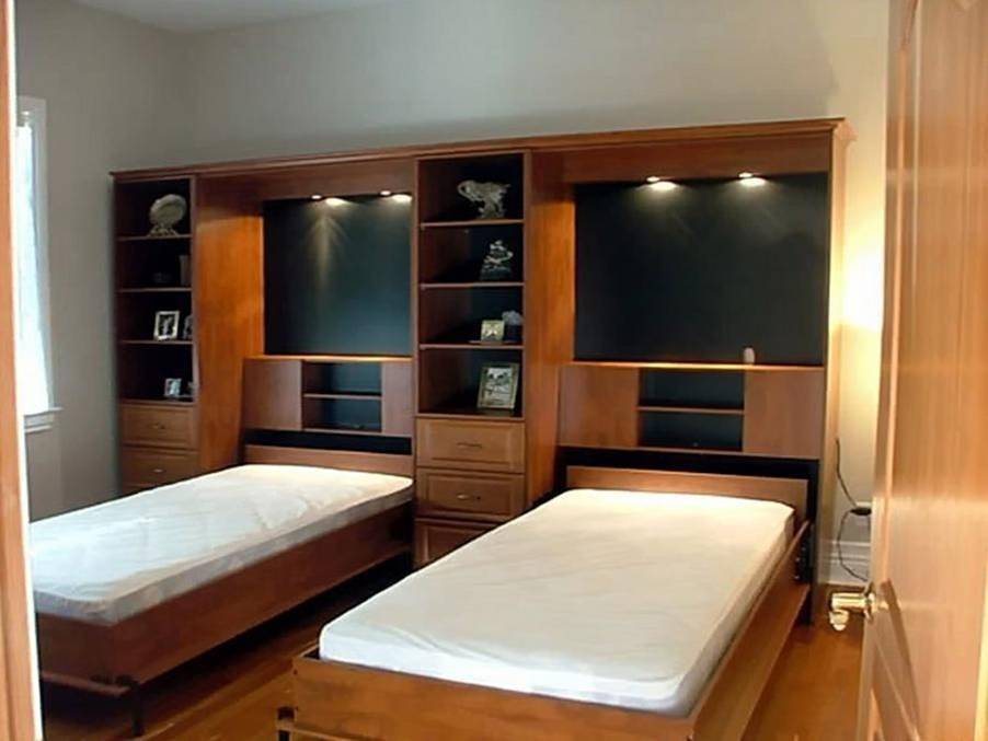 - Кроватями со встроенным шкафом (комодом, столом);