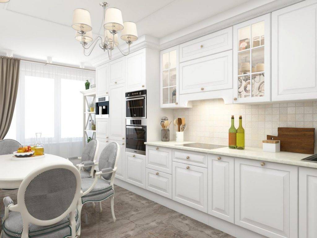 1. Белый. Нестареющая классика, этот цвет подойдет для любого стиля и визуально расширит комнату. Чтобы такая кухня не напоминала «операционную», следует разбавить интерьер яркими красками. Такими деталями могут быть кухонный фартук, шкафчики или яркие стулья.