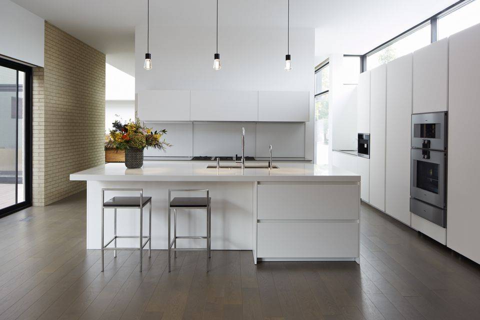Стиль Минимализм подобен Хай-Теку, но излишняя яркость, техника и утварь захламляющая стол не допустимы. Форма шкафчиков может быть округлая или квадратная.