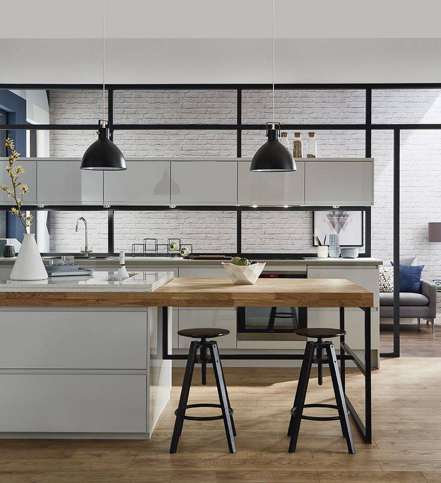 Применяются необычные формы гарнитура, разная фурнитура, металл, стекло. Тон кухни кофе с молоком заменяют насыщенной гаммой, но любителям нейтрального можно его ставить и дополнить обилием крупных аксессуаров.