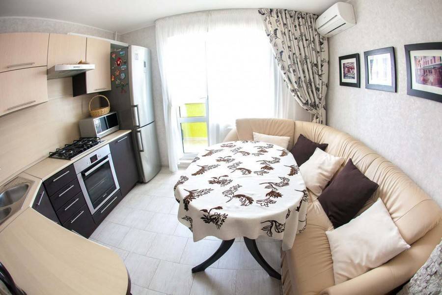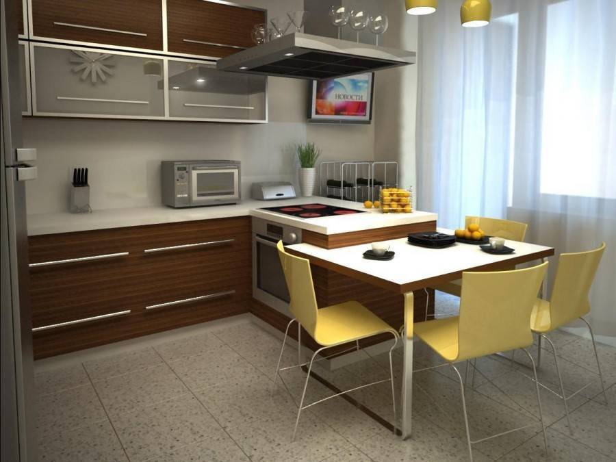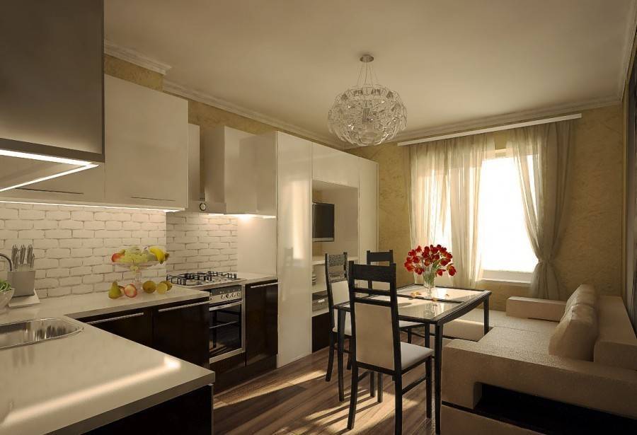 Для создания в квартире атмосферы комфорта и уюта помещение для приготовления пищи совмещают с зоной для приема гостей. Для этого сносят стену между этими комнатами. Несмотря на то что целью такой перепланировки является создание единого помещения, дизайнеры рекомендуют зонировать пространство с помощью световых акцентов или других элементов. К тому же можно оформить две зоны в разных цветах.