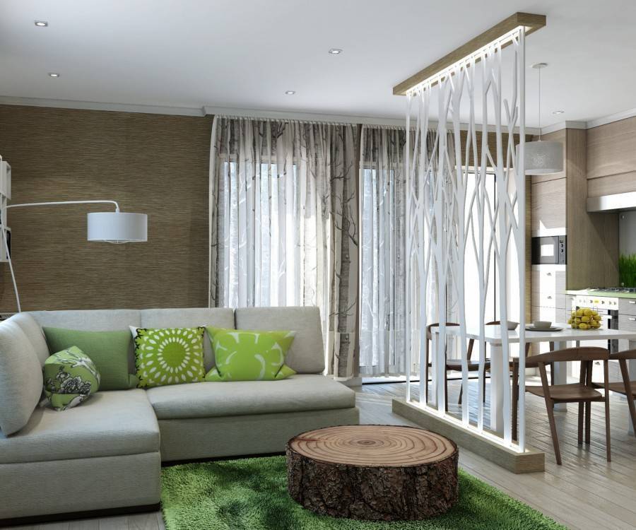 К зонированию кухонь и гостиной в дизайне на 16 кв. м