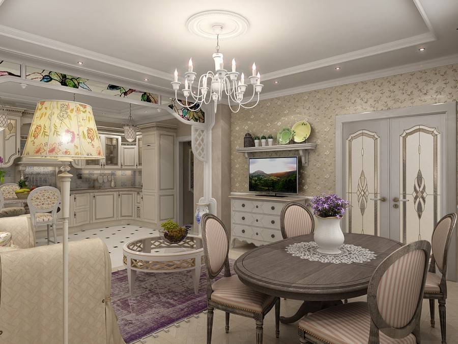 Оформить помещения в традиционном стиле. Строгие легкие занавески, модные и одновременно скромные люстры – это черты нестареющей классики. Такой образ позволяет сделать плавный переход на границе двух комнат.