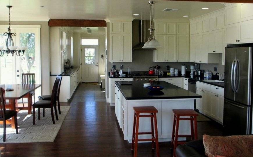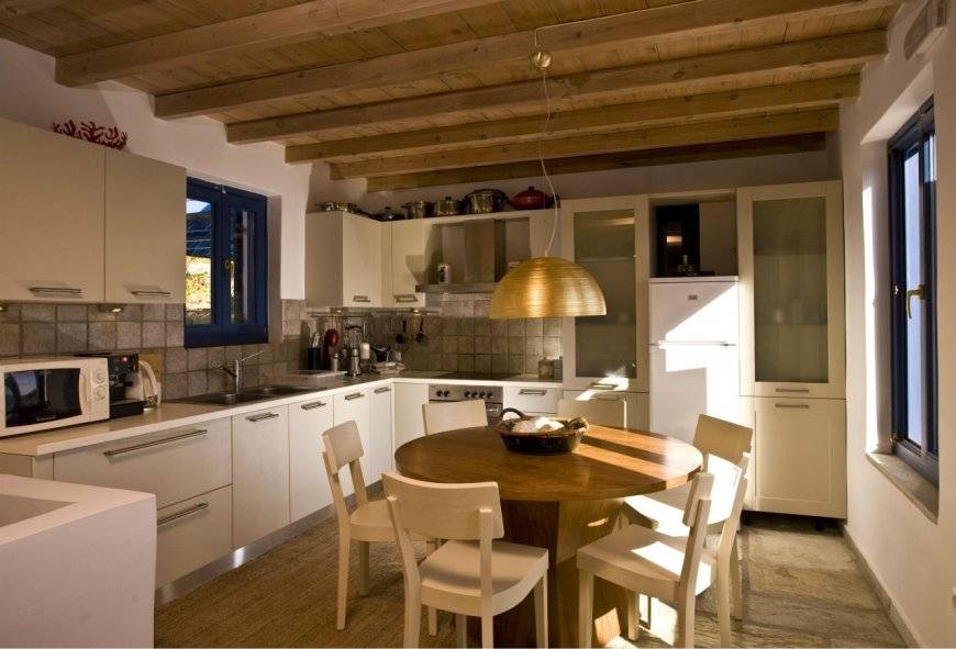Лучше всего для островного гарнитура подходят просторные кухни в частных домах, в которых легче подвести к острову коммуникации и вынести на островной модуль мойку или варочную панель.