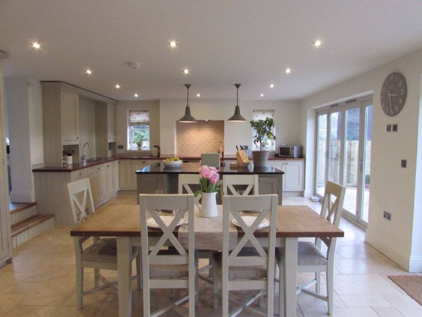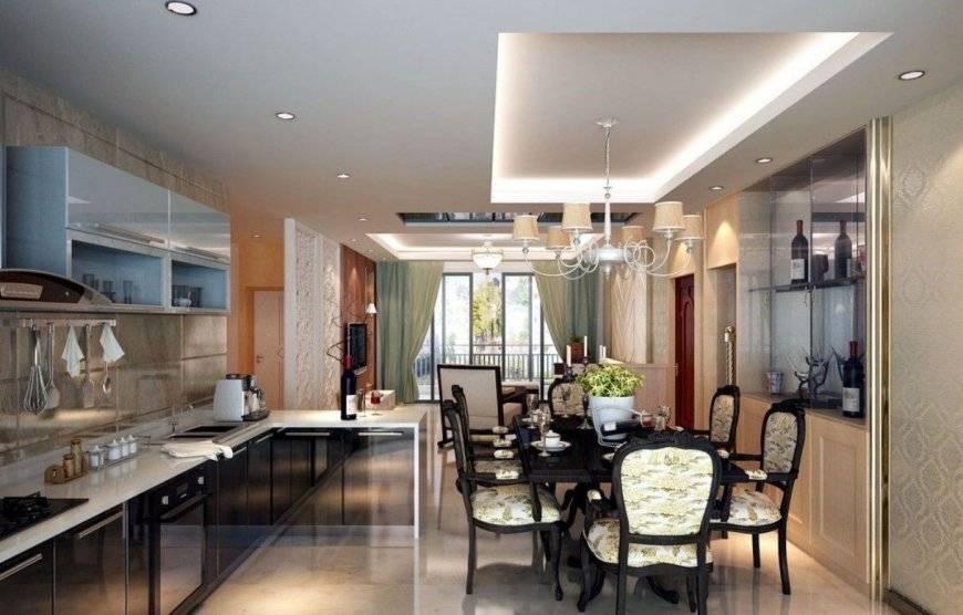 Совмещайте правильно классические и современные элементы. К массивной вычурной люстре подберите светодиодные встроенные светильники над рабочим фартуком.