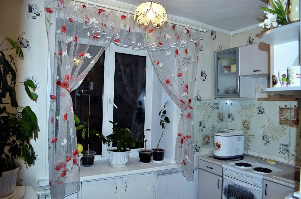 - Не завешивайте окно тяжелыми шторами – естественный свет на кухне небольшого размера просто необходим.