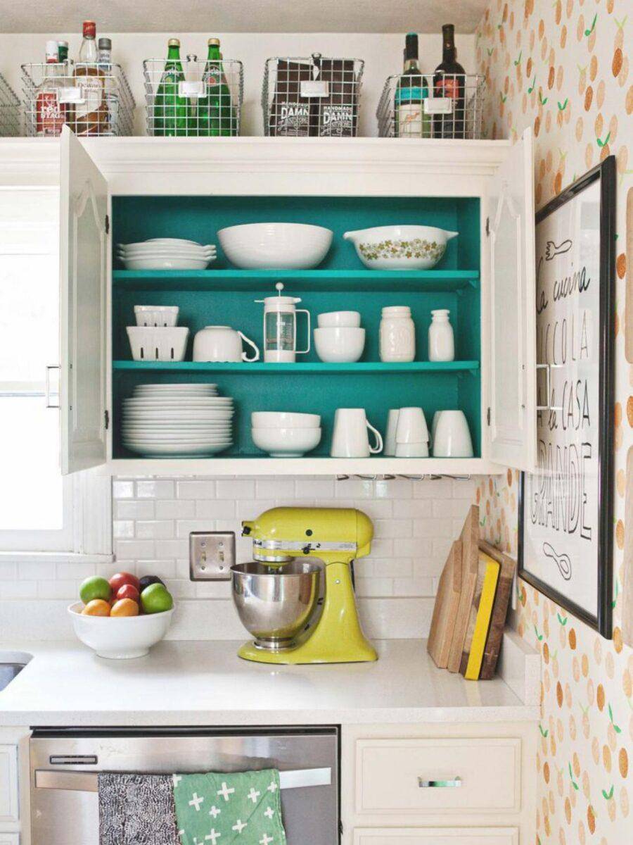 При этом кухня не должна напоминать склад. Всё то, чем вы не пользуетесь отправьте на балкон, а вообще ненужное – на свалку.