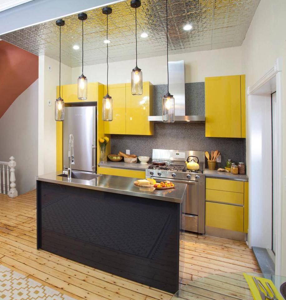 - Выбирая различные варианты освещения, не забывайте о безопасности. Не следует размещать розетки и светильники ближе чем на 60 см к кухонной мойке.