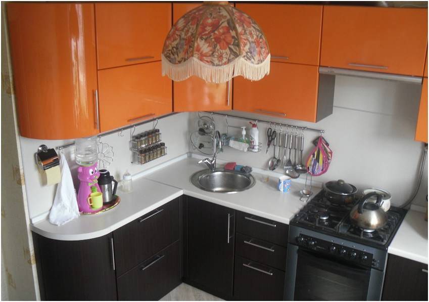 На сегодняшний день существует огромное количество угловой мебели, вогнутых во внутрь шкафов, всевозможных видов столешниц для более эффективного использования площади маленьких кухонь. Не нужно загромождать кухню большим количеством, пусть даже и компактной мебели. В данном случае обойдитесь самым необходимым минимумом. Кухонный гарнитур на заказ, скорее всего, станет самым правильным решением для маленькой кухни в маленькой хрущевке.