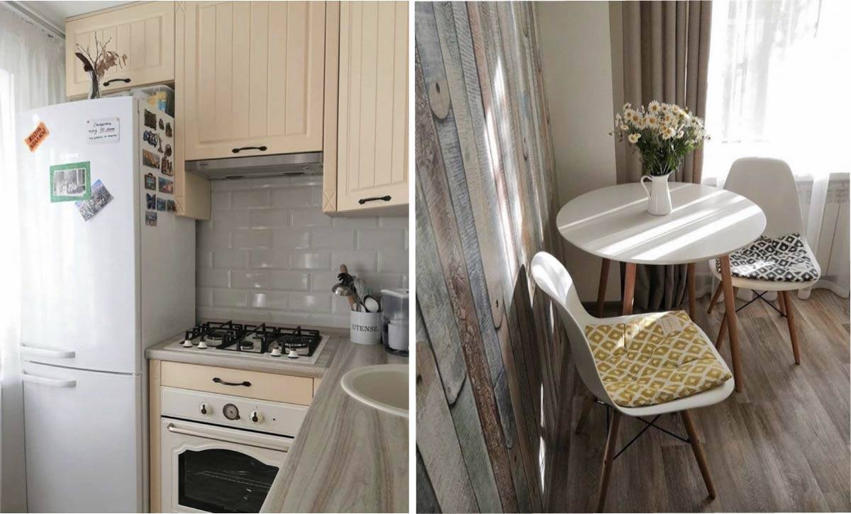 Маленькие кухни – типичное явление домов старой постройки времен СССР. Кроме того, что нужно найти место для холодильника, необходимо как-то обыграть в интерьере газовую колонку.