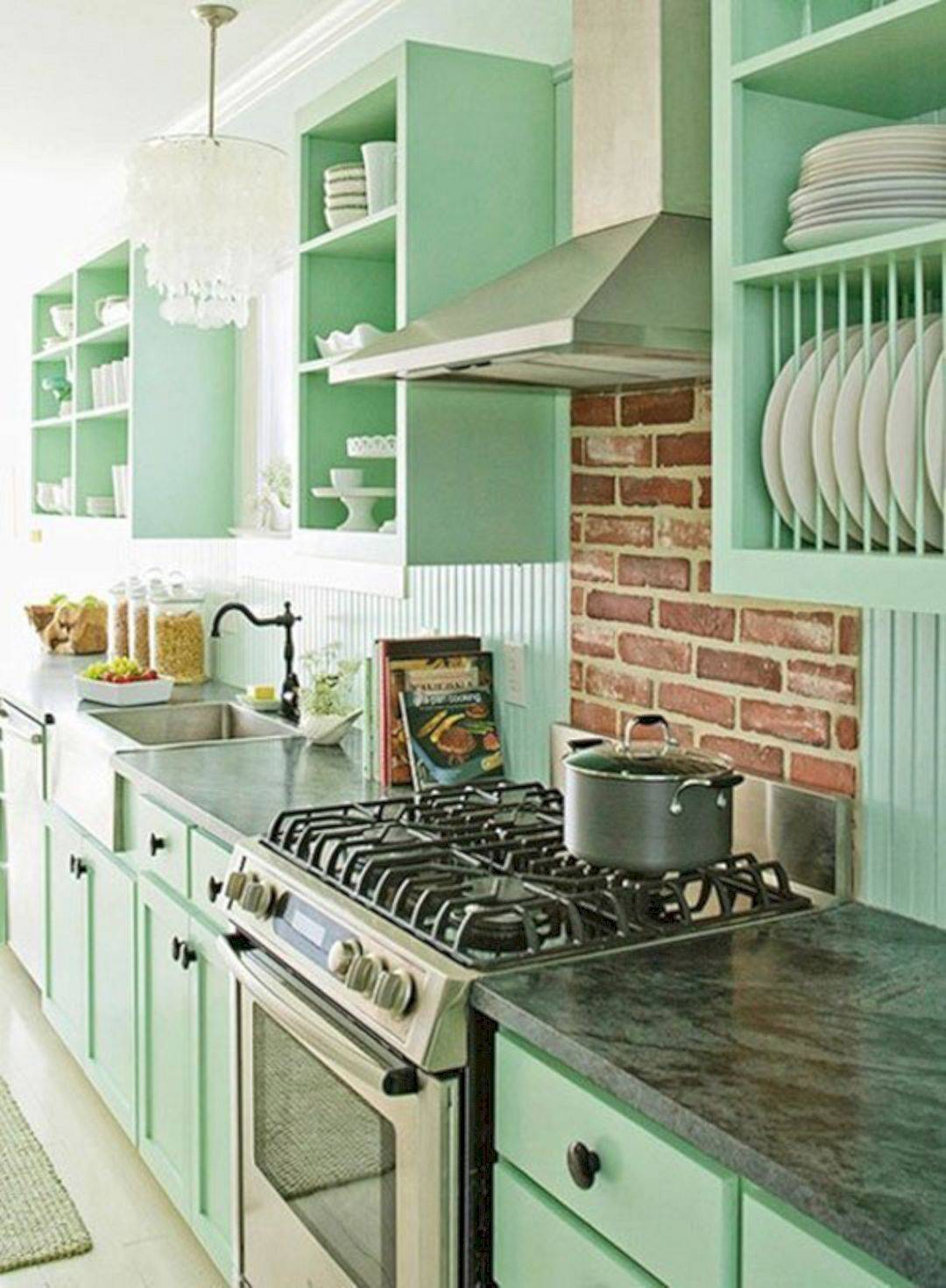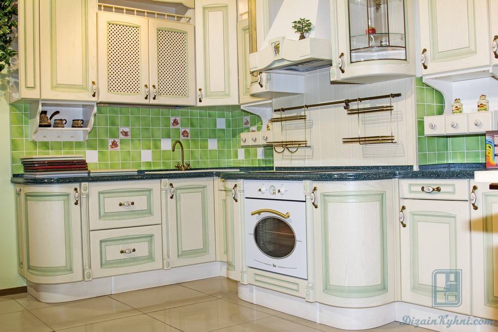 Жизнерадостные оттенки весенней листвы создадут на кухне уютную и умиротворяющую атмосферу. Зеленый цвет идеально дополняется коричневым и серым, а особенно — рисунком натуральной древесины.
