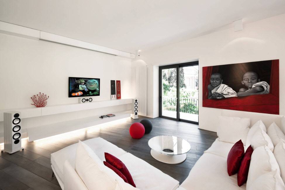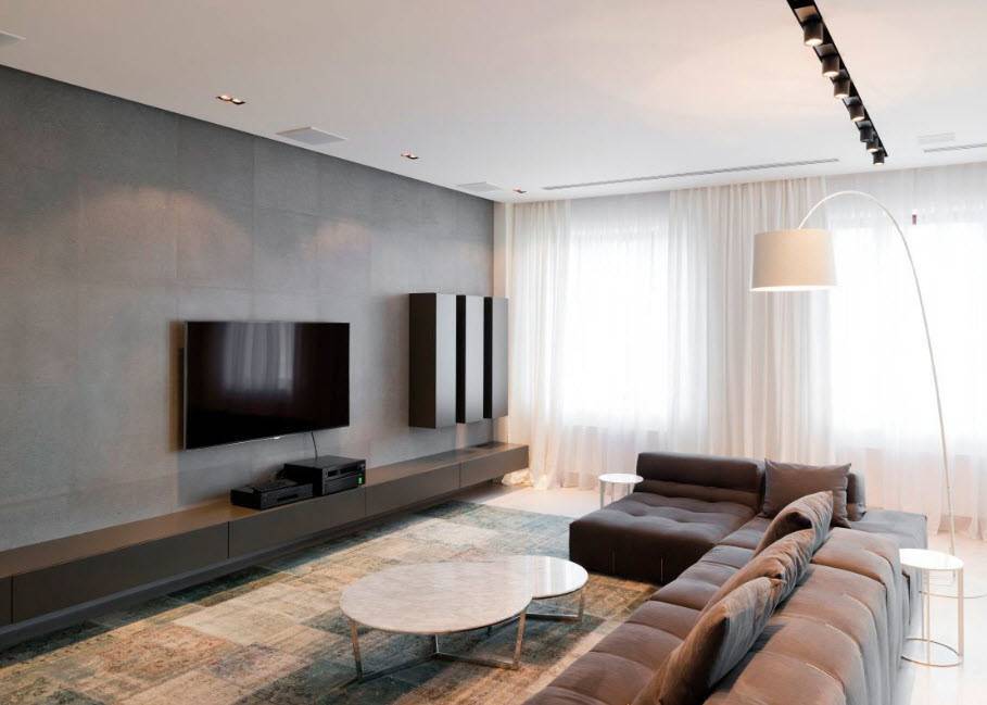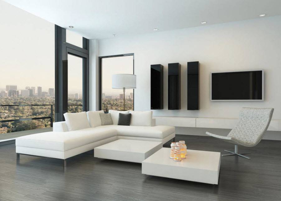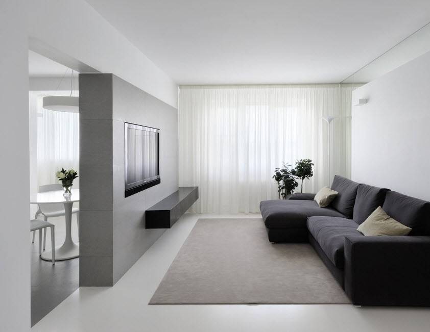 Интерьер комнаты, выполненной в стиле минимализм, предполагает гармоничную отделку в сочетании с минимальным количеством предметов декора и мебели. Гостиная в стиле минимализм – проста и гениальна одновременно. Главную роль в дизайне зала, играют формы и фактуры, помещение наполнено простотой и максимальной функциональностью.