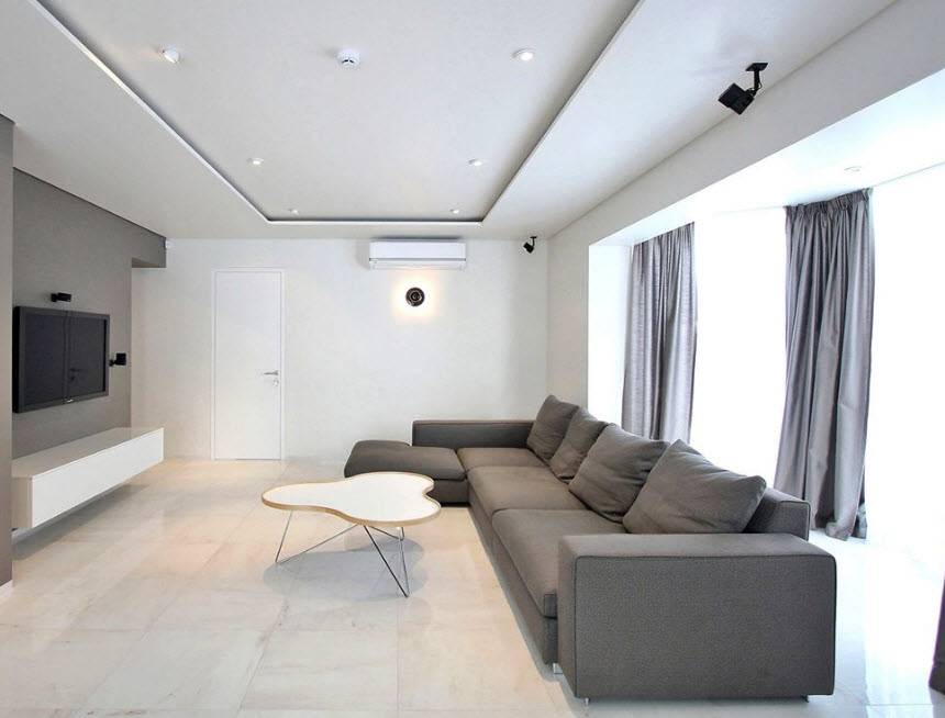 Популярными материалами для отделки потолка в стиле минимализм считаются:
