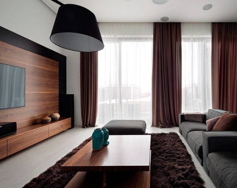 В качестве дополнительного цвета используют черный, коричневый или темно-серый. Его применяют для контраста, но если помещение больших размеров, то такой оттенок может быть использован в качестве основного.