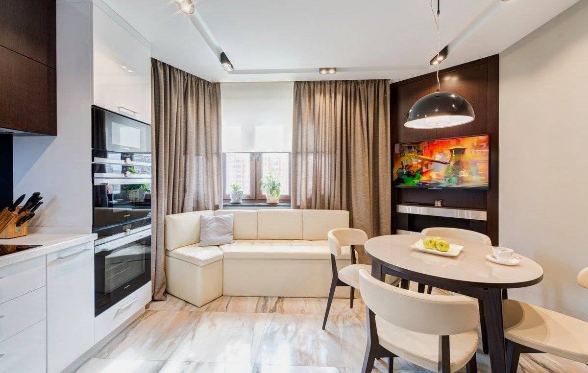 Вариации дизайна маленькой кухни с диваном