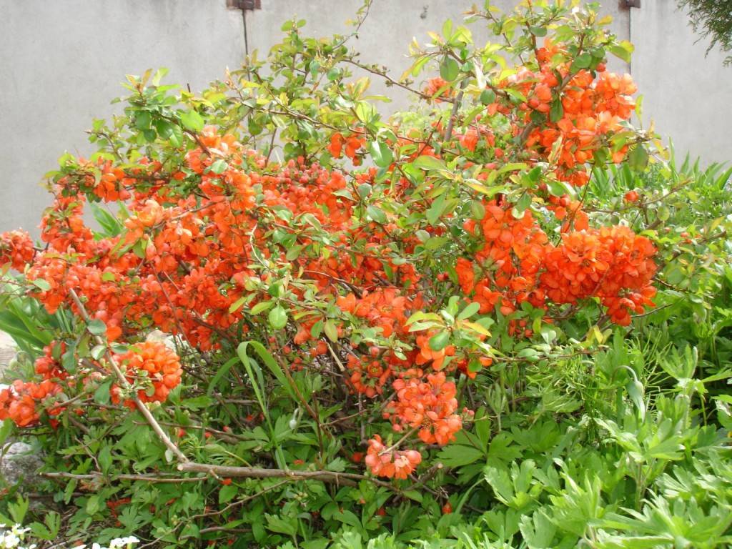 Кустарник японская айва хорошо смотрится как подбивка к более высоким растениям.