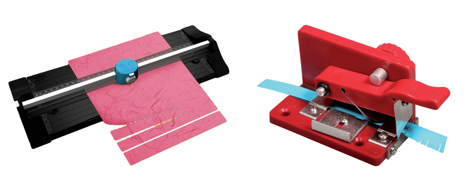 Для нарезки бахромы иногда используется специальный инструмент, одновременно нарезающий и продвигающий квиллинговую полоску.