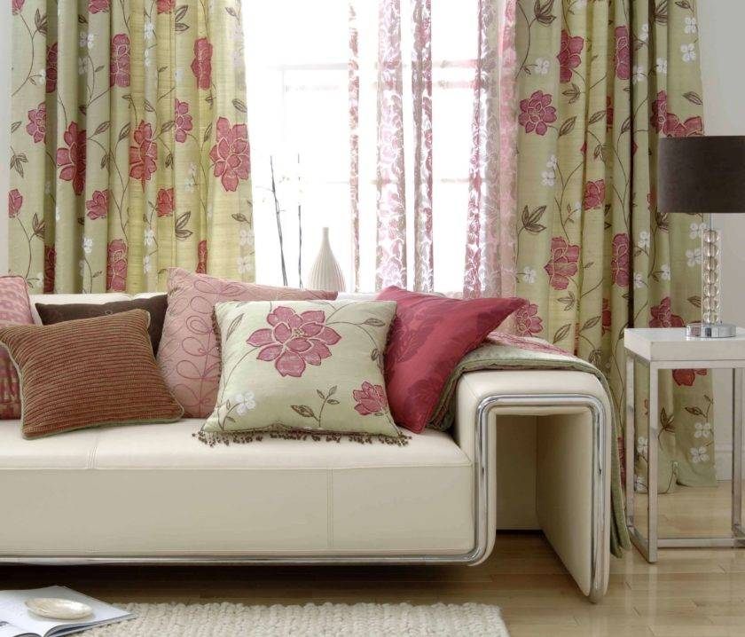 Стильное решение – сочетание разных фактур: однотонной вариации с вышивкой, ассоциирующейся с эпохой барокко, и полупрозрачного шёлка с кружевом. Яркие цветочные композиции подарят комнате весеннюю свежесть и подойдут стилю прованс, кантри, рустик.