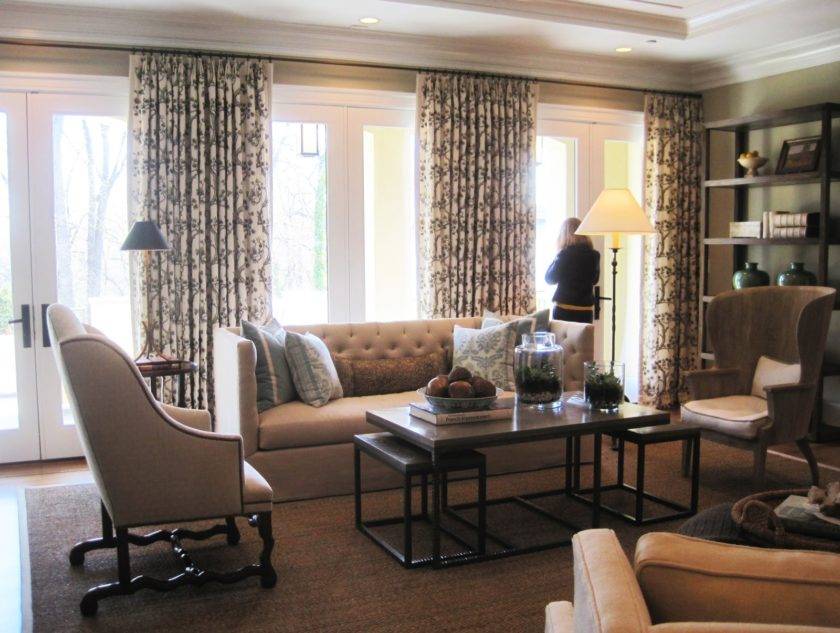 Необходимо тщательно продумать, в каком стиле будет выдержана гостиная, какую мебель вы хотите в ней поставить, рассмотреть варианты использования фурнитуры и декора. Стоит помнить, что даже небольшие кусочки полотна способны скрыть изъяны в оконном или дверном проеме. Особый шарм залу придадут портьерные конструкции с орнаментом, что одновременно смотрится изысканно и благородно. Часто многие рукодельницы берутся самостоятельно изготовить шторы с ламбрекенами, но в основном данный элемент декора подбирают в магазинах или консультируются с дизайнерами.