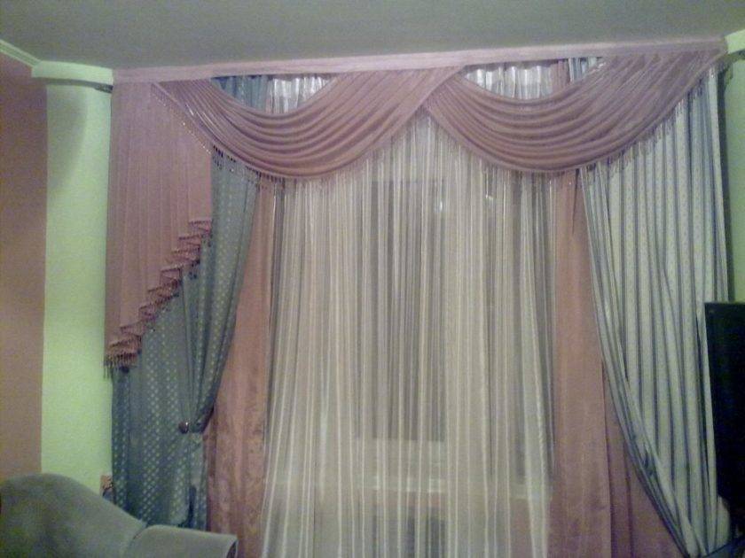 Комбинированные, т.е. сочетают элементы отделки разных видов ламбрекенов для штор, фото ниже. Например, успешно сочетается жабо со свагом и т.д.