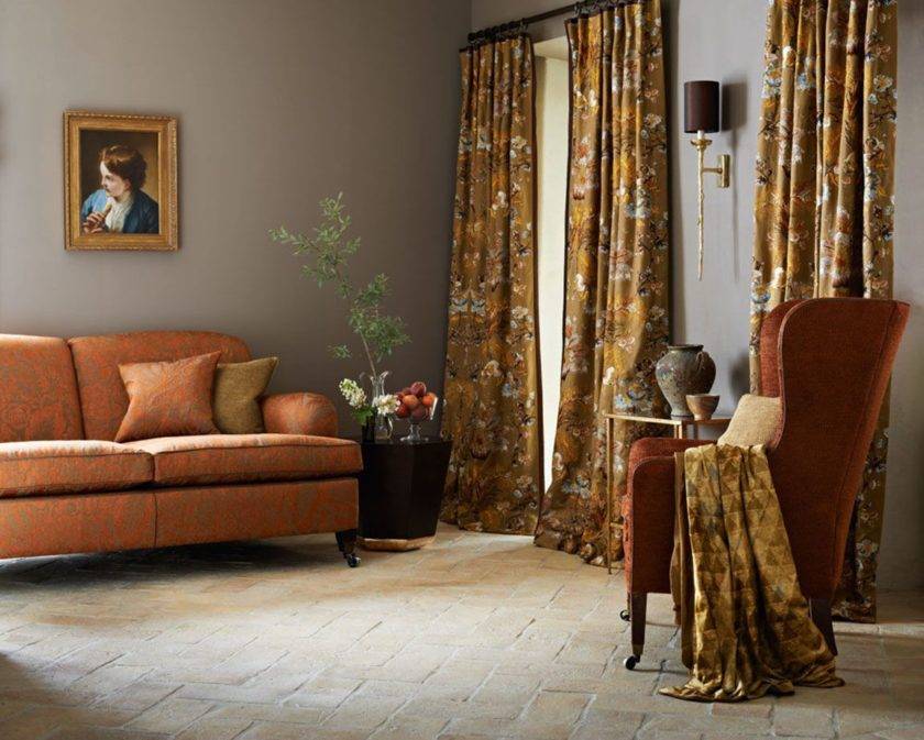 В дом, для которого характерен классический стиль, гармонично впишутся «портьеры» с широкой полосой, в горошек, либо с природным принтом. При выборе занавесок из бархата или шёлка, следует учесть, что эти ткани очень боятся прямых солнечных лучей. Поэтому, обязательным здесь будет наличие подкладки на внутренней стороне. Она защитит материал от выгорания.