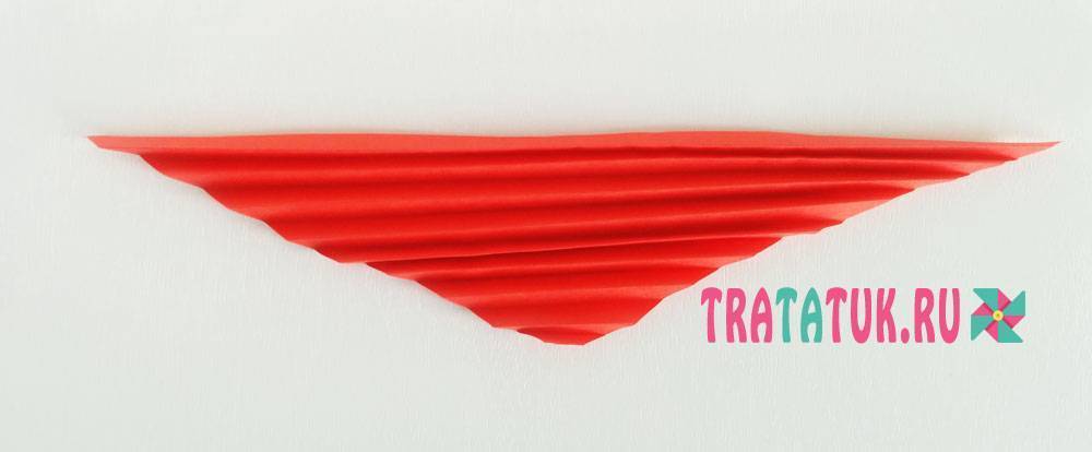 На один лист понадобится один треугольник. Поверните его широкой стороной вниз и начинайте там же делать складки, как у гармошки.