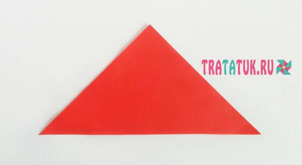 Чтобы сделать этот продолговатый листик, нужна бумага треугольной формы. Можно сначала вырезать из бумаги квадрат.