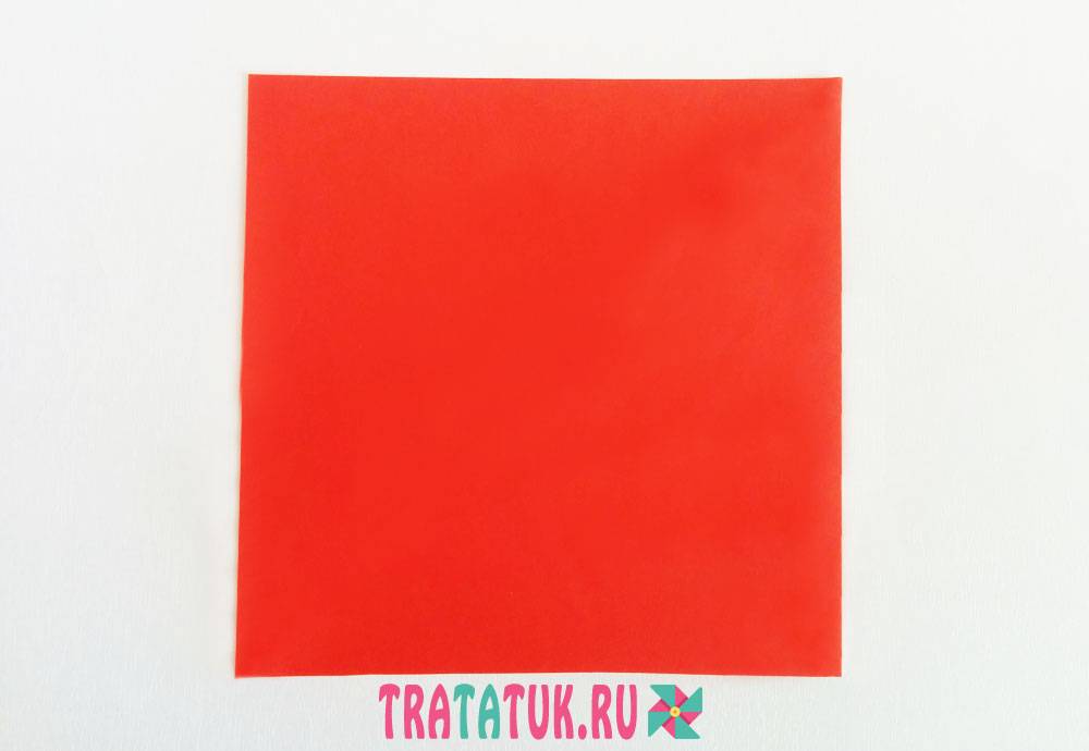- Чтобы сложить модуль-лепесток, согните квадрат пополам снизу вверх.