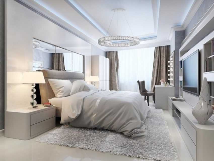 Красивые, современные, функциональные спальни невозможно представить без люстры. Но для выбора модели требуется учитывать основной стиль помещения, габариты, высоту от потолка до пола.