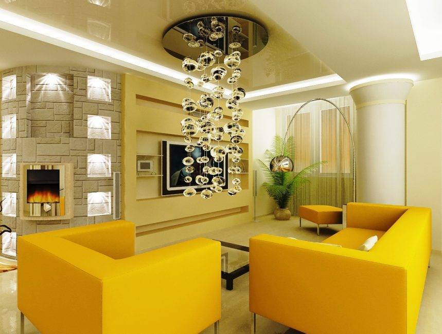 В зале принято угощать гостей во время праздника. Здесь собирается вся семья за совместным просмотром семейного фильма. Поэтому стилевому оформлению комнаты отводится особое внимания. Оно должно быть одновременно и праздничным, и уютным. Поможет в этом деле может люстра. Правильное освещение скроет недостатки комнаты, подчеркнет ее достоинства.