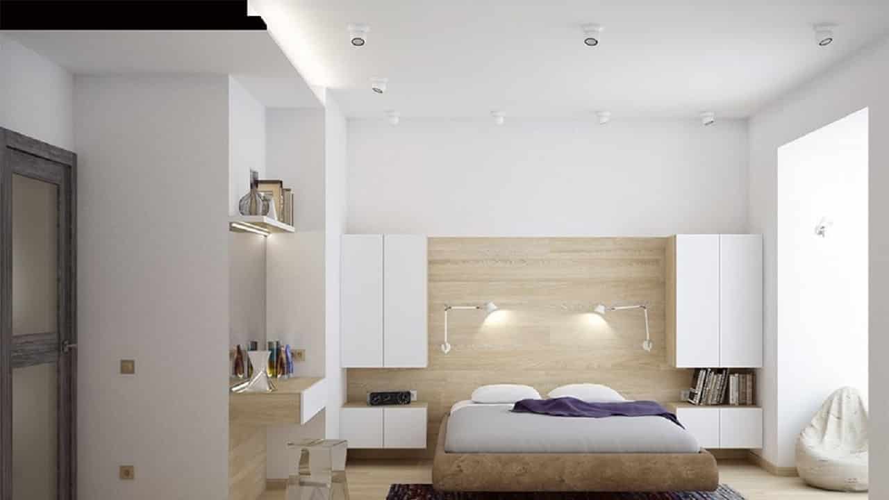 Зональное освещение необходимо в случае, если спальня совмещает в себе функции гардеробной, кабине и комнаты отдыха. Тогда общего освещения может просто не хватать для выполнения какой-то определенной работы. В этом случае можно дополнительно выделить рабочий или компьютерный стол, зону творчества, туалетный столик, гардероб, кровать или диван.