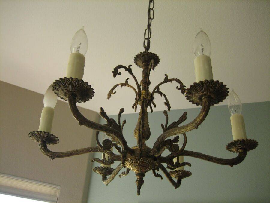 Структура люстр — подвесная, многорожковая с латунными или бронзовыми рожками, к которым крепятся тканевые, стеклянные плафоны. Для небольших комнат используется прибор из трех абажуров, а в спальнях побольше — семирожковая конструкция.