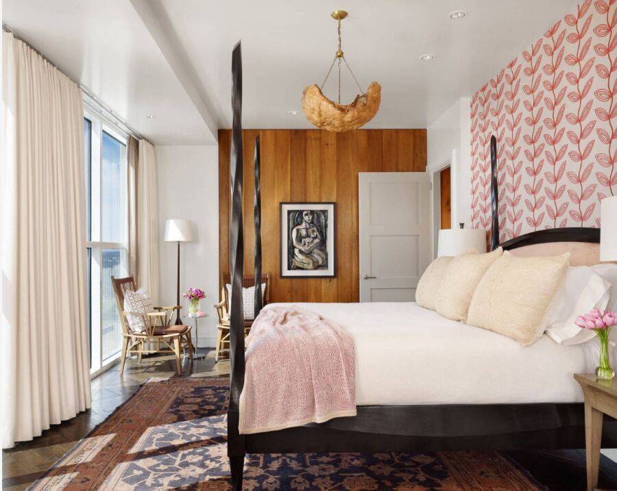 Современные гостиные часто используют приглушенный розовый цвет – отличный способ добавить немного женственности в пространство гостиной, которое вы можете внести с помощью узорчатых стульев, диванов, подушек и многослойных ковриков.