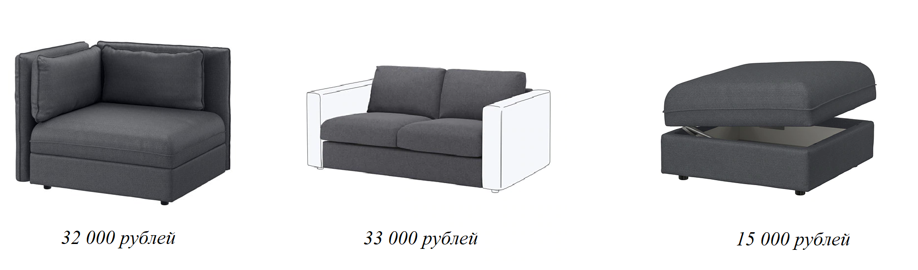 Преимущество таких секций в том, что они оснащены ящиками для хранения под сиденьем. Их можно ставить вплотную друг к другу в нужном количестве, но минус в том, что одна такая диванная секция в ИКЕА стоит очень дорого.