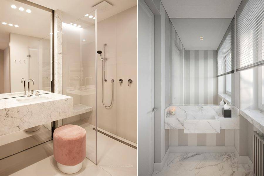 Позолота в маленьком пространстве смотрится тяжело, ввиду чего ее приходится дозировать, уменьшая витиеватость отделки. Хром будет вполне гармонично смотреться с белым (например, в отделке фурнитуры, держателя туалетной бумаги и т.д.). Не стоит сочетать зеленый или синий с желтым, красный с оранжевым и коричневым. Отлично сочетаются серо-мятный с серебром и белым, беж с серым и белым, шоколад с белым и молочным. При подборе подходящего сочетания учитывают температуру тонов: она должна быть схожей.