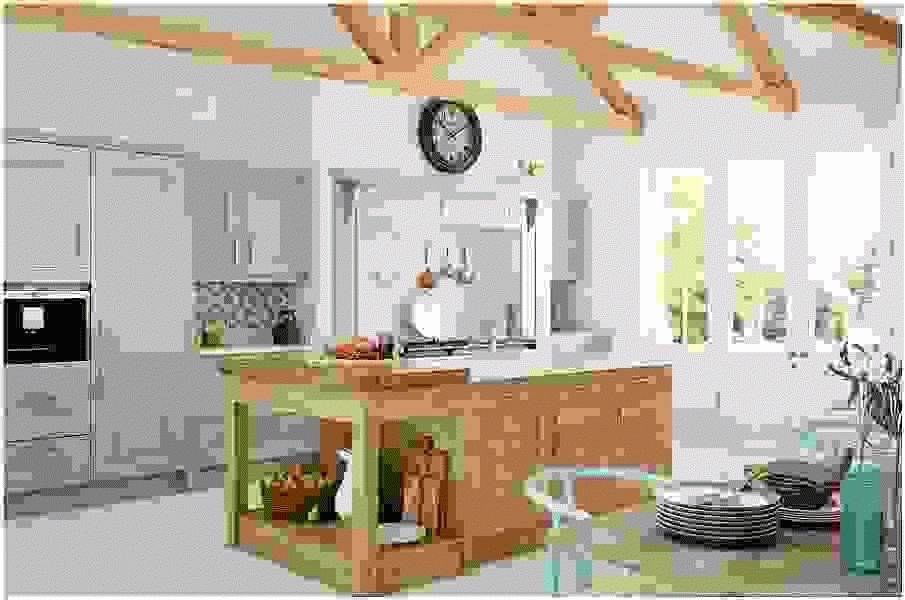 Стены мятного цвета в сочетании с неотёсанными деревянными балками и грубым кухонным гарнитуром позволяют воссоздать в вашем доме аутентичную атмосферу французского прованса.