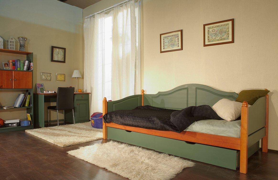 Экологически чистой и не выделяющей вредных соединений считается мебель из массива сосны. Из хвойных пород часто изготавливаются кровати для детей, которые отличаются длительным сроком эксплуатации. Изделие имеет надежный каркас и закругленные углы.