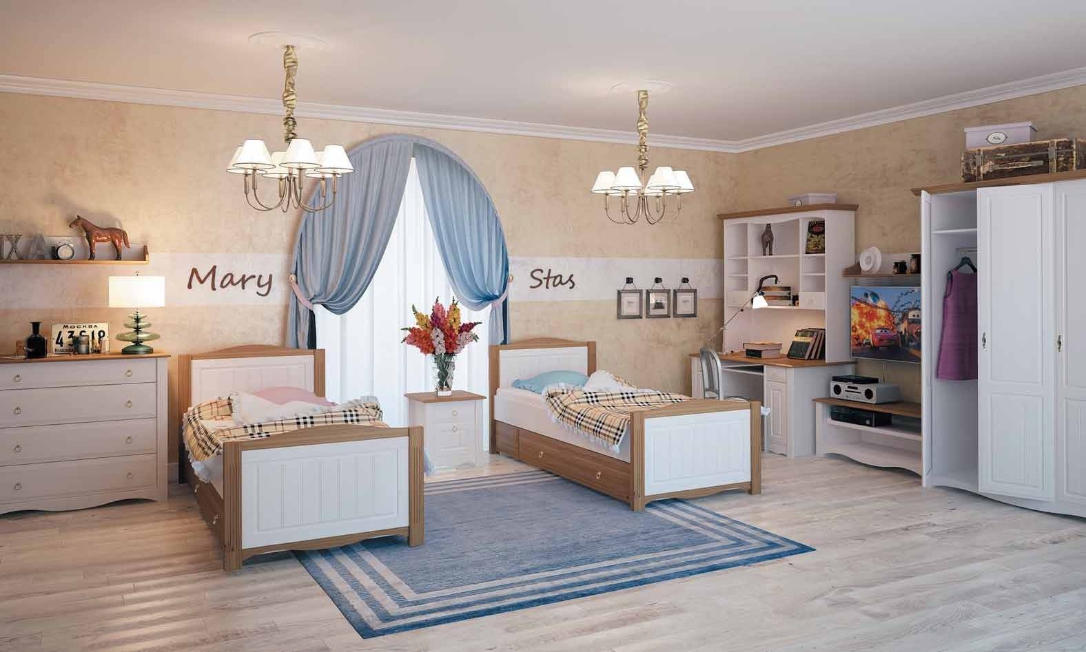 Неоклассический интерьер в детской объединяет классическую изысканность мебели и современный декор, технику. В классику добавляются современные светильники, подвесной потолок, шторы-жалюзи, шкаф-купе, компьютер на столе или игровая приставка.