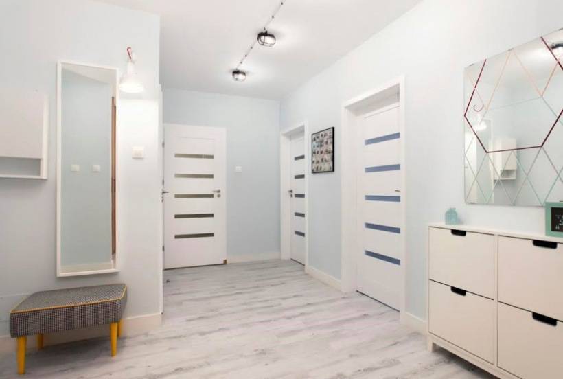 - Хорошая идея — обустроить небольшую прихожую в том же стиле и цвете, что и соседняя комната.