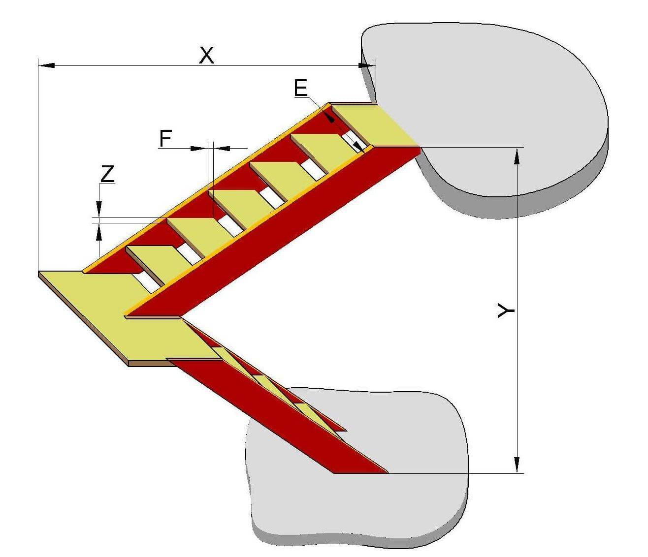 - X — длина проема — зависит от того, сколько места Вы можете выделить в своём доме для лестницы