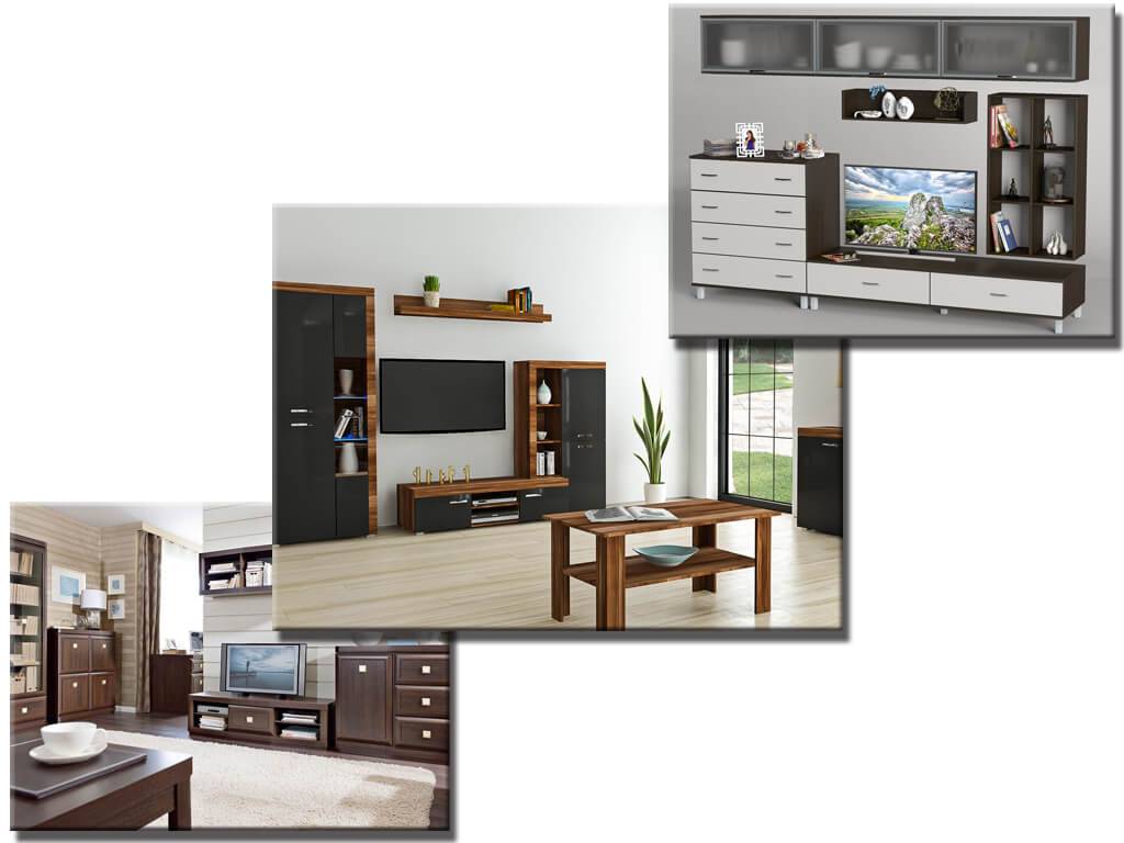Выбирая стенку для гостиной малых габаритов, следует учесть, что данный вид мебели бывает: