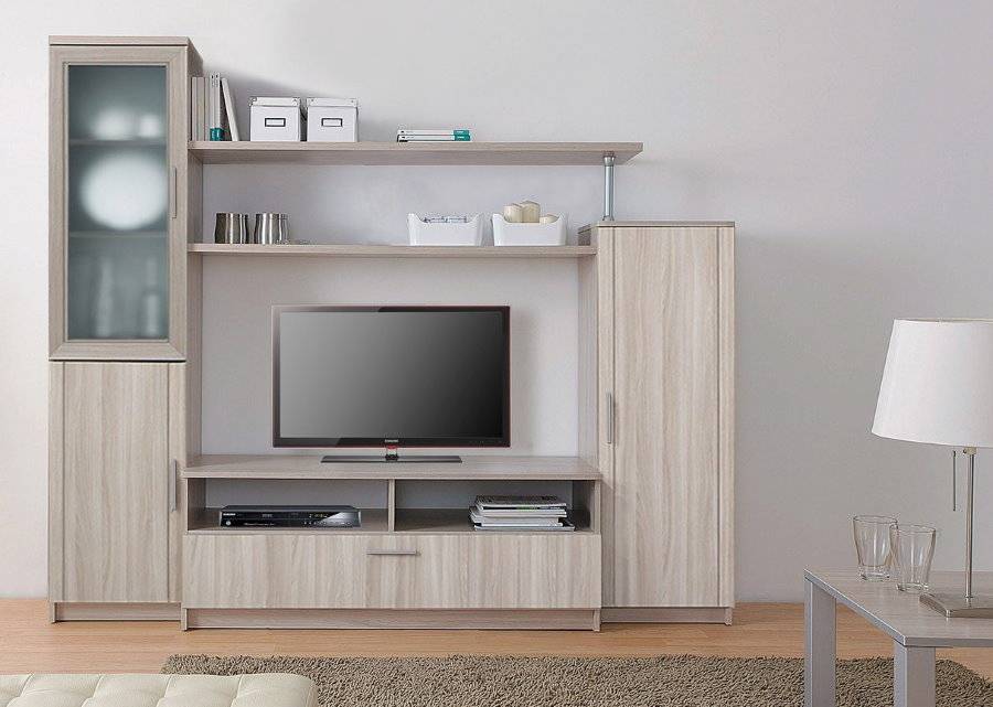 Практически каждая модель мини-стенки для гостиной имеет специальную нишу или подставку для телевизора. Обычно производители проектируют свою мебель так, чтобы можно было установить даже самую большую модель телевизора.