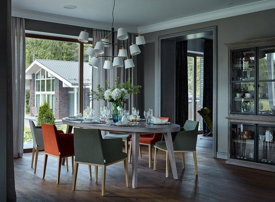 Окна должны быть большими, чтобы вид был доступен, а естественный свет заливал помещения. Каждую комнату можно посвятить отдельному направлению стиля, но таким образом, чтобы помещения дополняли друг друга, создавая цельную картину
