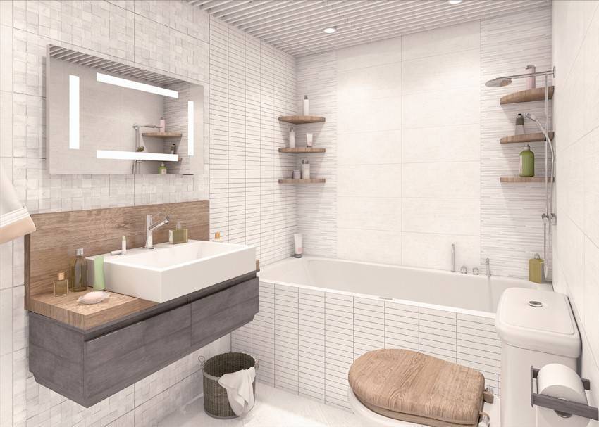 На первый взгляд может показаться, что белая плитка в ванной – это не самый практичный вариант. Это мнение ошибочно, так как у кафеля светлых оттенков есть множество достоинств, например: