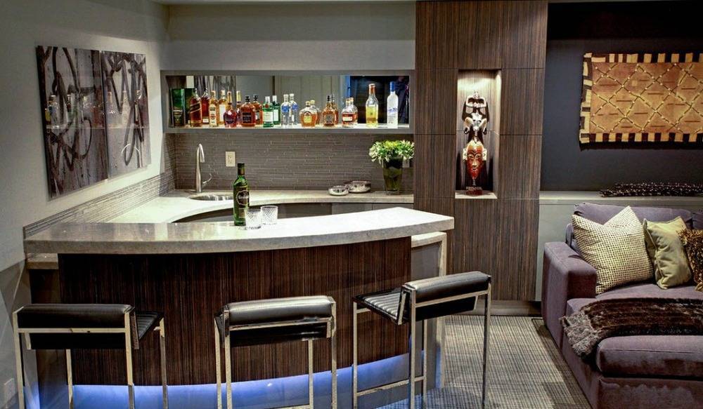 Дизайнеры часто бывают недовольны подобной мрачной цветовой гаммой, ведь тогда уютное, пусть и мужественное, место отдыха может с легкостью превратиться в темный, холодный могильный склеп. Чтобы избежать подобных ситуаций и только подчеркнуть с помощью контрастов основной темный спокойный цвет мастера дизайна прибегают к хитрому приему: они добавляют в интерьер комнаты несколько ярких элементов.