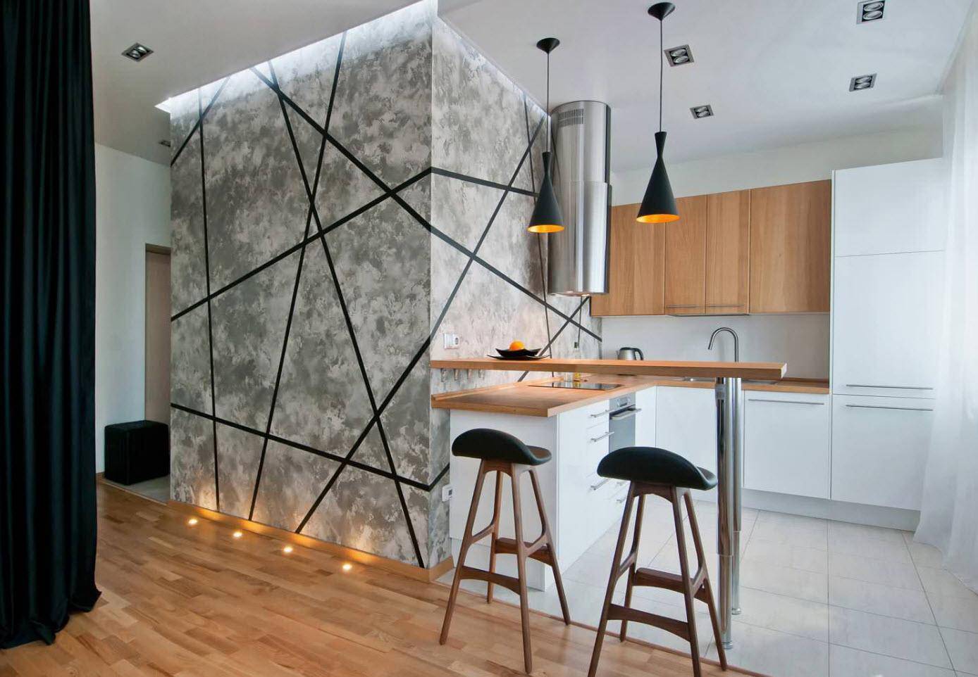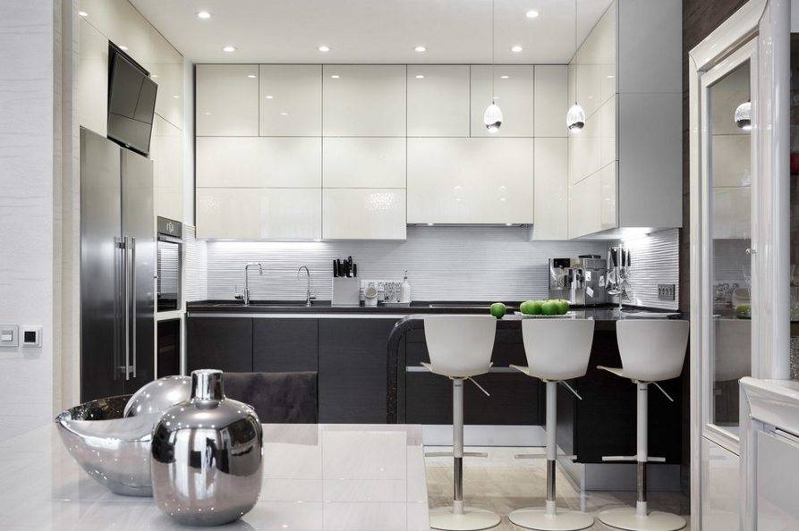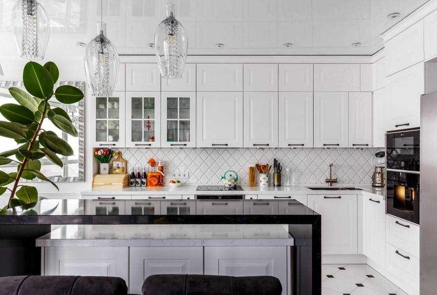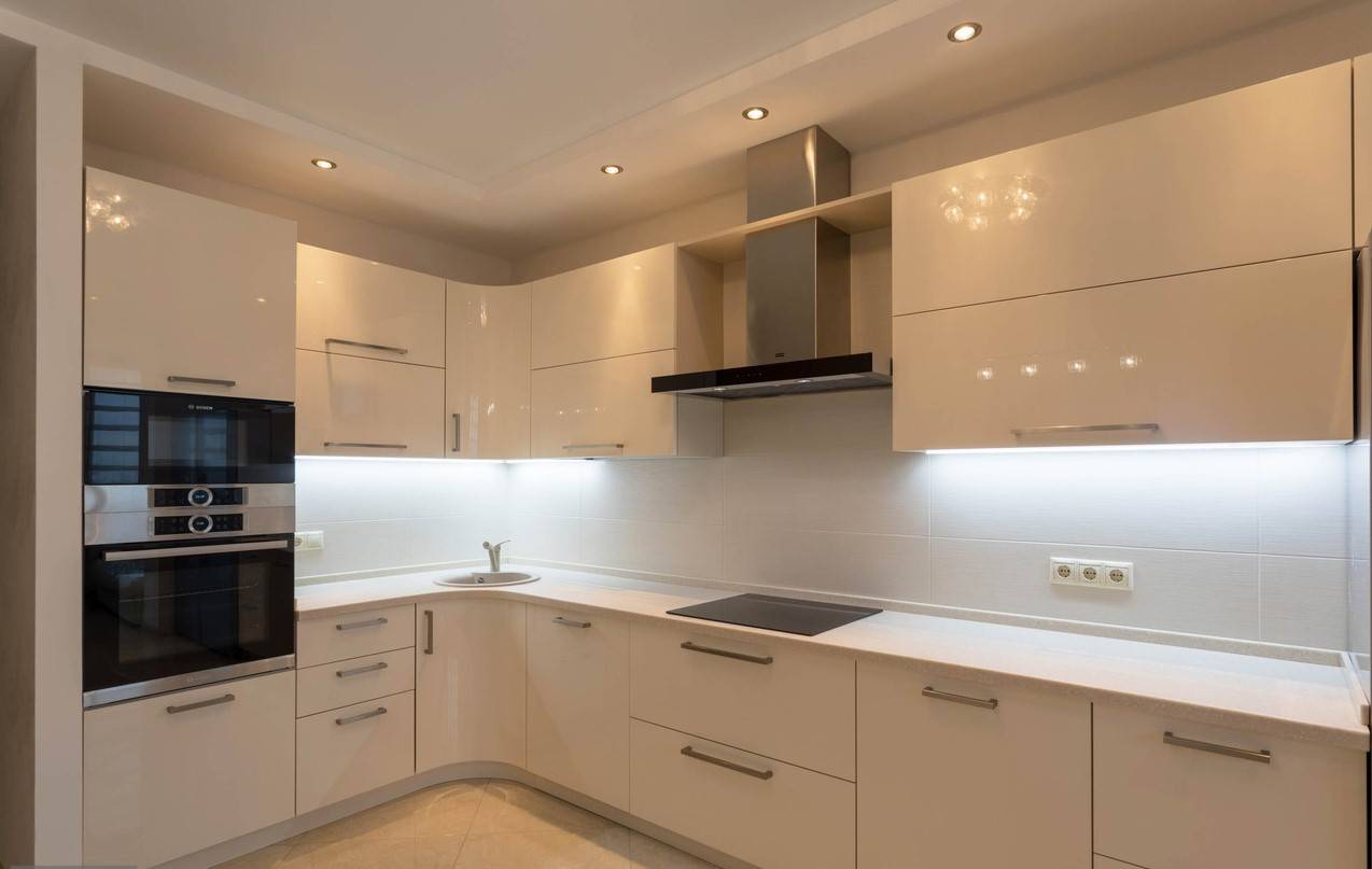 - невозможность изменить свет. Отверстия для установки светильников делаются сразу, а после их перенести нельзя. Но на кухне сложно сделать перепланировку, поэтому перенос и не требуется. Главное — сделать точечные источники света и над рабочей, и над обеденной зоной;